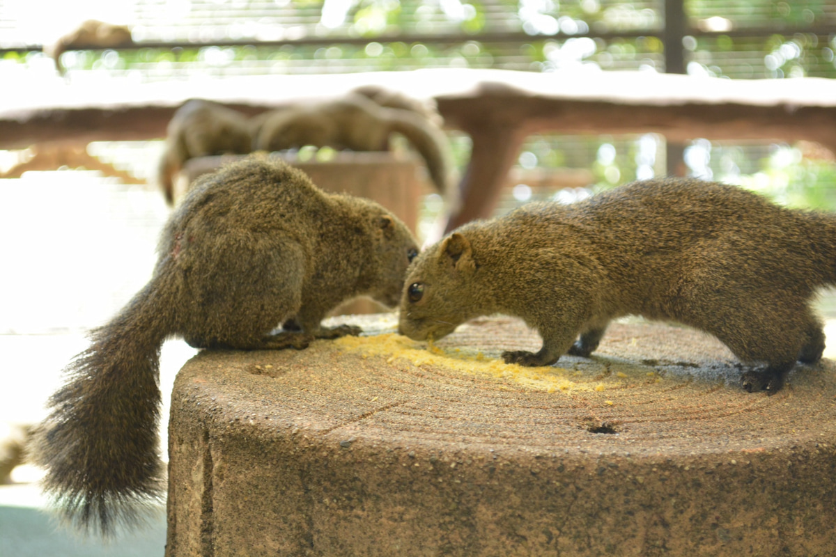 エサやり体験は4歳から参加可能。入場時に革手袋を着用し、リスが手に乗ってエサを食べる姿を観察できます。タイワンリスは冬眠しないため、通年でエサやり体験が楽しめるのも魅力。岐阜城観光とあわせて立ち寄りたい癒しの空間です。