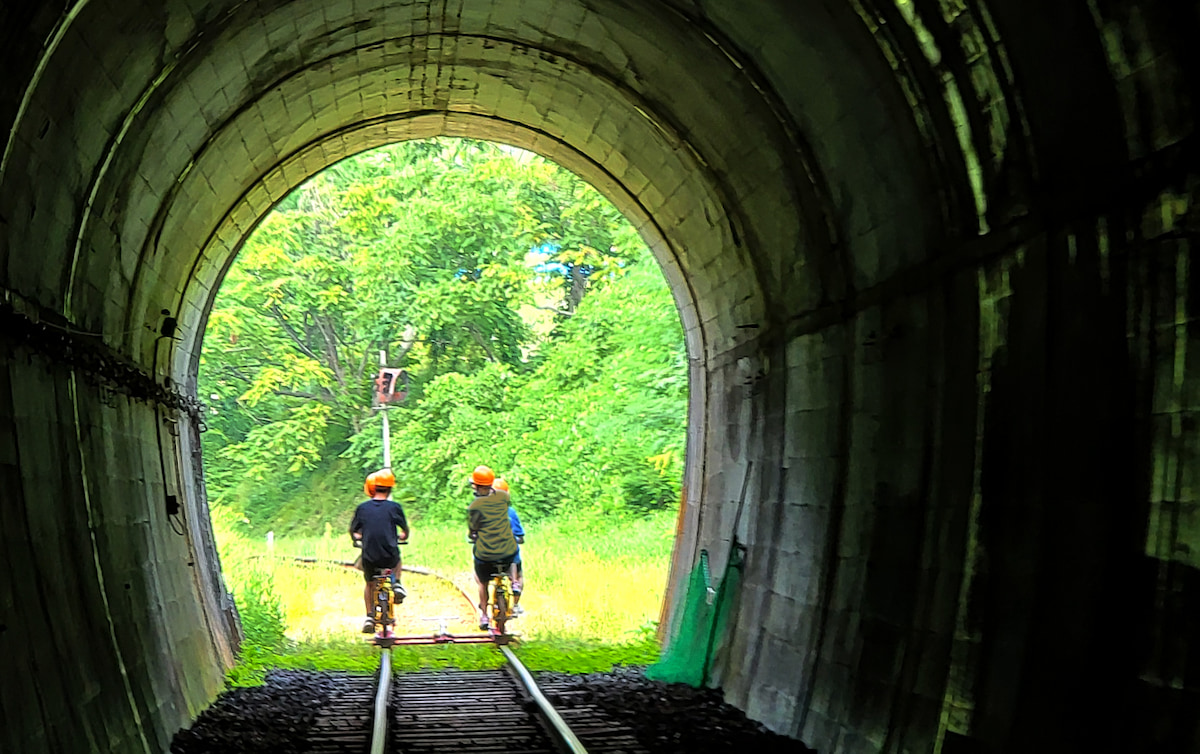 一方の渓谷コースは、山間の鉄橋やトンネルを抜けるスリル満点のルート。眼下に広がる渓流や山の緑、そして風を切る爽快感がたまりません。標高差による季節ごとの景観の変化も魅力で、春は新緑、秋には紅葉を眺めながらの“空中サイクリング”が楽しめます。
