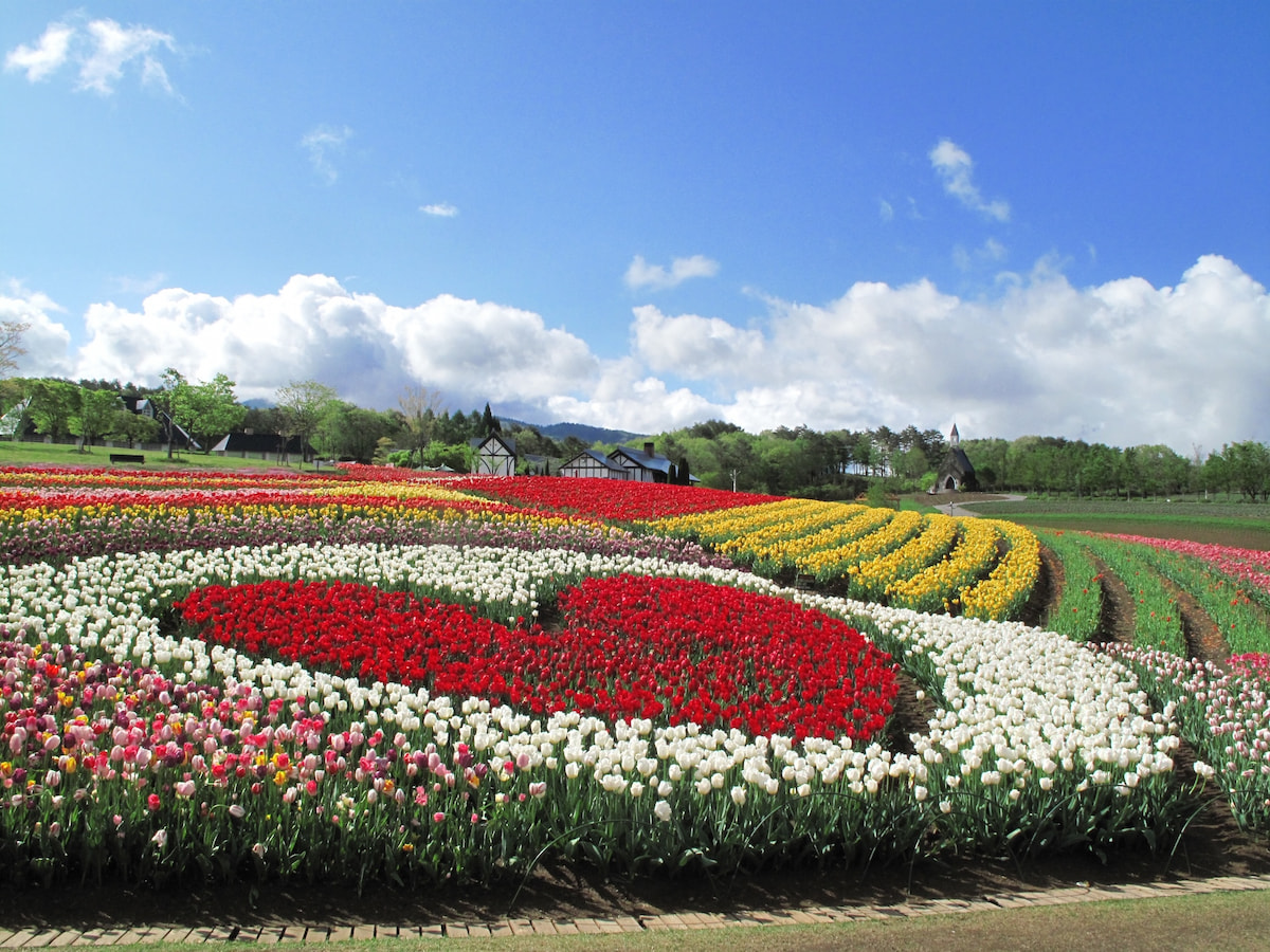 園内の花畑は約4.5ヘクタールの広さを誇り、4つのフラワーゾーンで構成。チューリップ、ラベンダー、サルビアなど、季節ごとに変わる花々が高原の風に揺れる姿は圧巻です。開花状況は公式サイトで随時発信されているため、見頃をチェックして訪れるのがおすすめ。