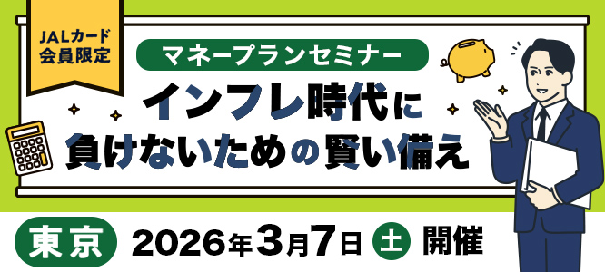 マネープランセミナー(東京開催)開催日:2026年3月7日(土)〔インフレ時代に負けないための賢い備え〕物価が上昇している今、お金の価値を守るには「正しい備え」が欠かせません。今から準備できるマネープランについて、基礎から楽しく学べるセミナーです。参加費無料!詳しくはこちら -