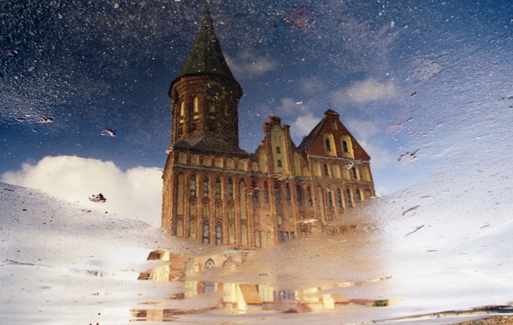 - せっかくの旅行が生憎の雨・・・と思っていたら、水溜りの中に綺麗な大聖堂の姿が! 偉大な哲学者カントが亡くなったとされる場所、カント大聖堂です。 今でもカントは水溜りの中の世界で生きているのかもしれません!