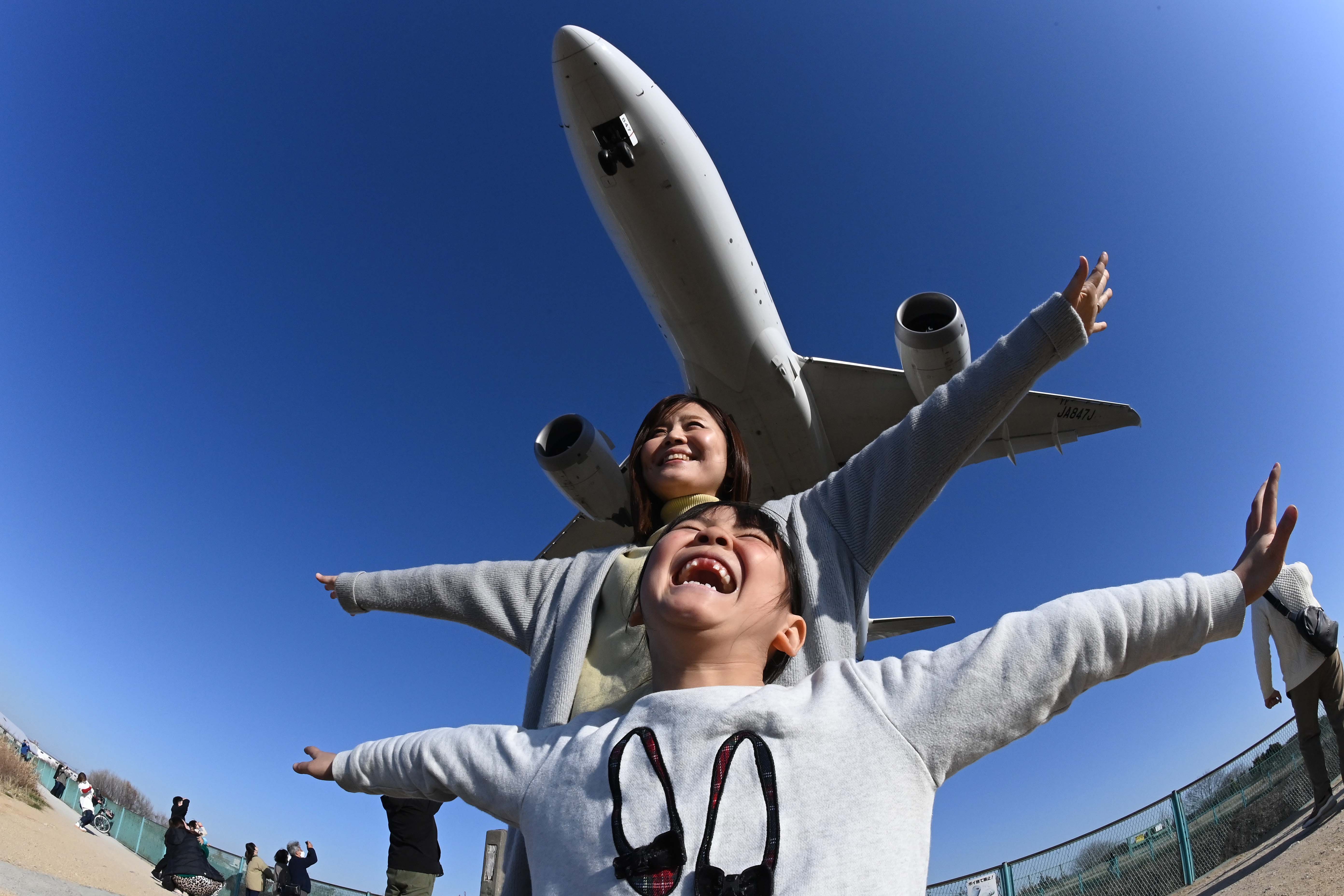 大阪・伊丹空港に着陸する飛行機を間近で見られる千里川土手へ。ものすごい音と距離の近さに圧倒されます。機体を真下から見ることなんてめったにないので、非日常の体験にテンションも上がります。