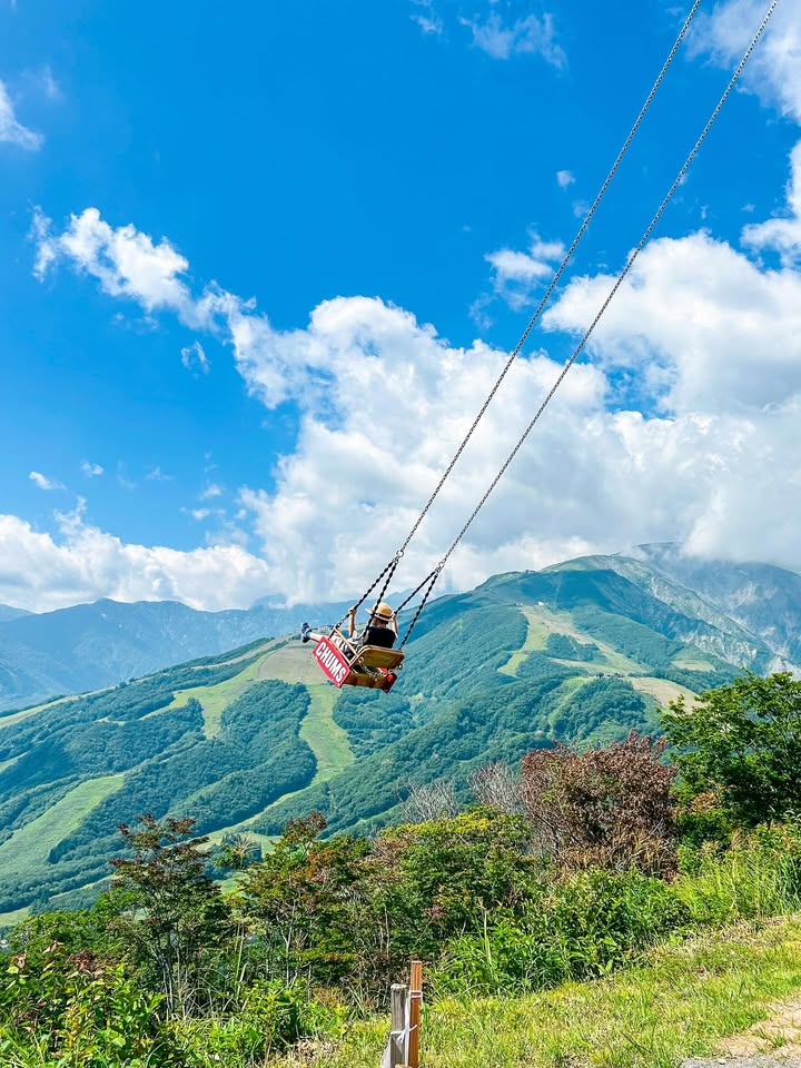夏の長野旅行で、乗った憧れの白馬のブランコ。大自然に囲まれてスイングする大きなブランコに、少し怖いといいながら乗った息子は、とっても楽しそうでした。素敵な夏の思い出になりました。
