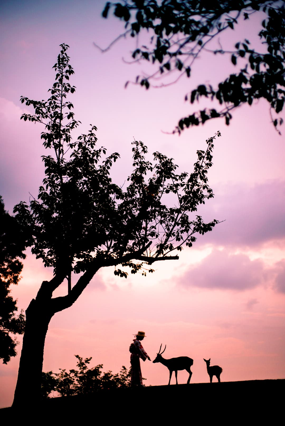 鹿さんと一緒に写真なんて無理かな…と思っていたその時、ほんの一瞬だけ、奇跡みたいに親子鹿と一緒に撮れたんです。
