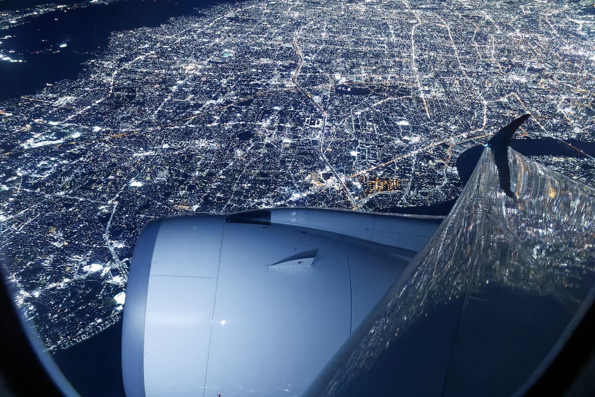 このフライト、Naviの減額マイルのお陰で予約できたクラスJで旅の疲れが取れただけでなく、伊丹空港を離陸して羽田へ向けて旋回していくと想像を絶する大阪の夜景が迎えてくれたのだった。