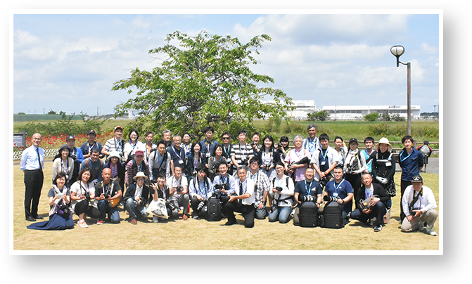 成田空港をバックに、最後に参加者全員で記念撮影!
